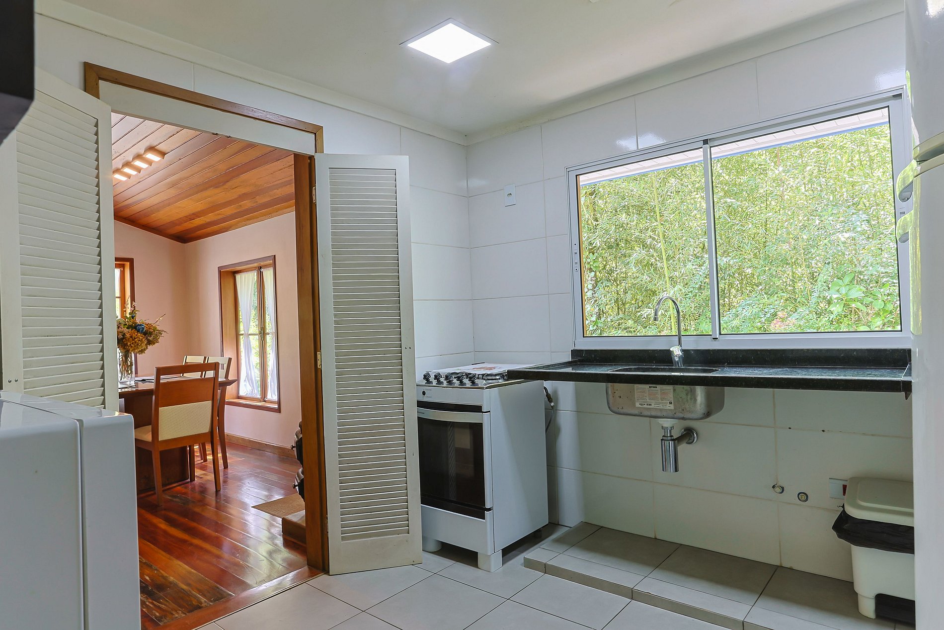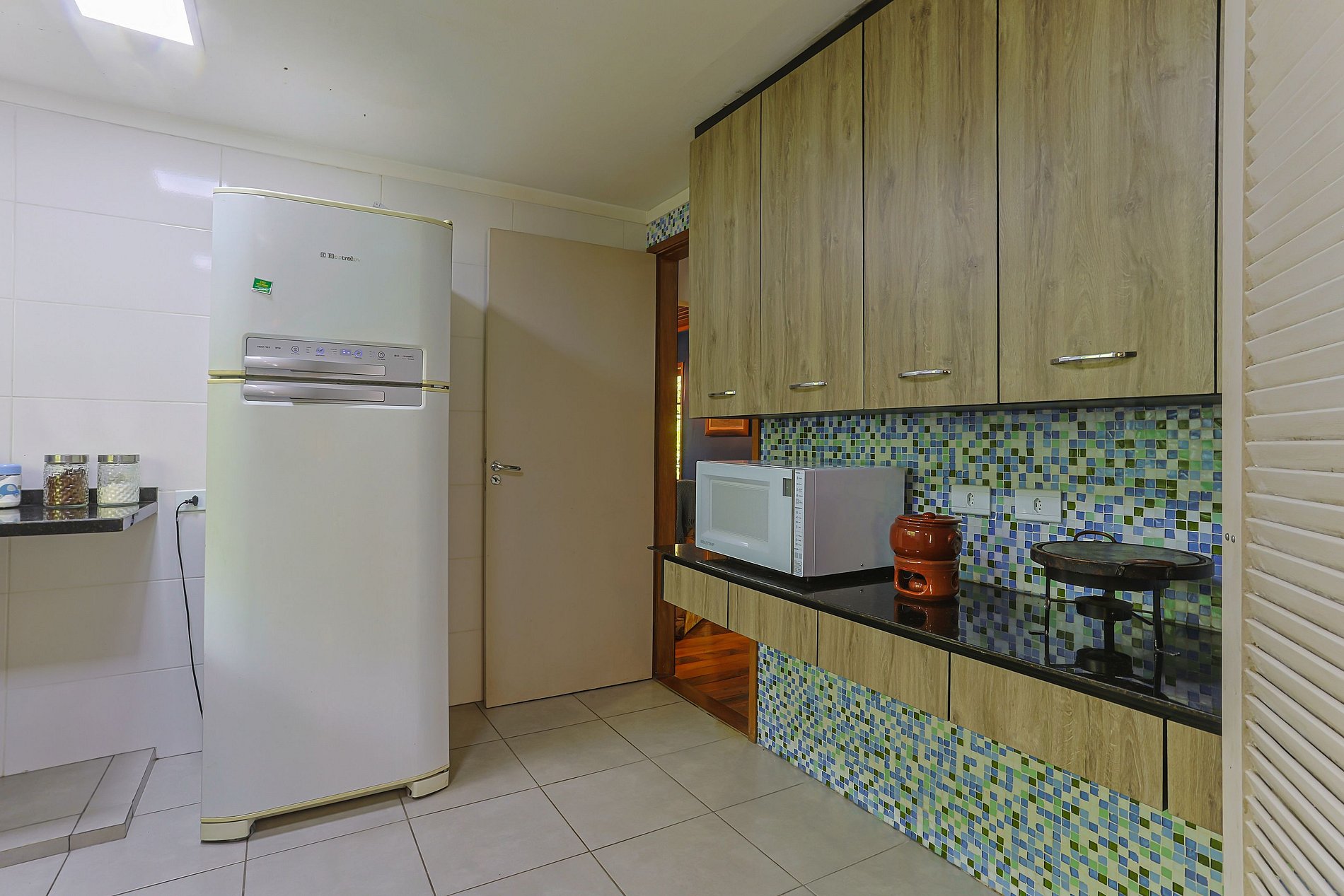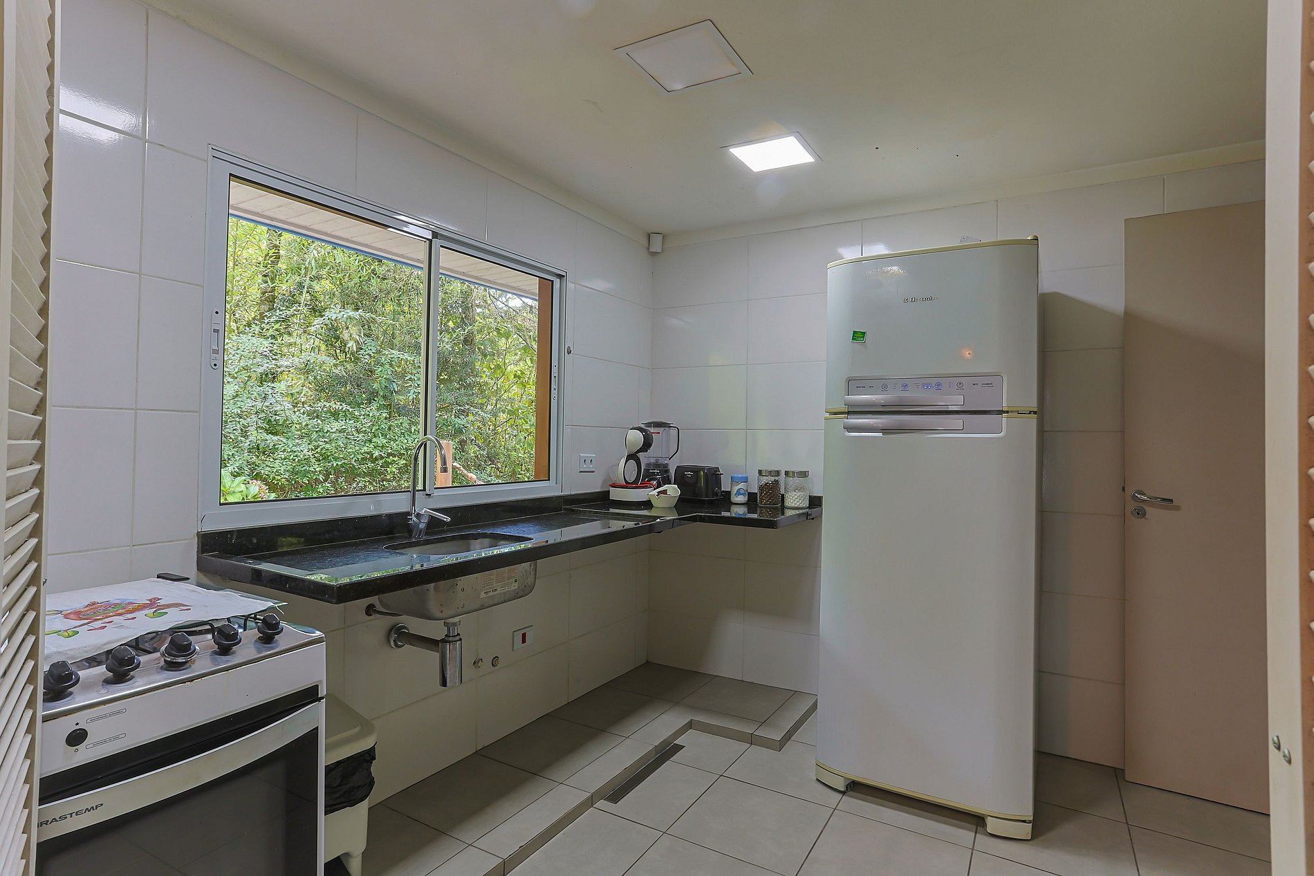 - Cozinha equipada com Fogão, Forno, Microondas, Geladeira Duplex, Cafeteira Dolce Gusto, Aparelho para Fondue e demais utensílios para preparo de refeições e lanches no lar;